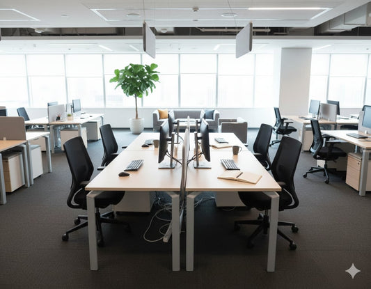 Les bureaux sont attachables entre eux à l'infini de sorte à pouvoir créer des bureaux multipostes de 2, 4, 6 personnes.