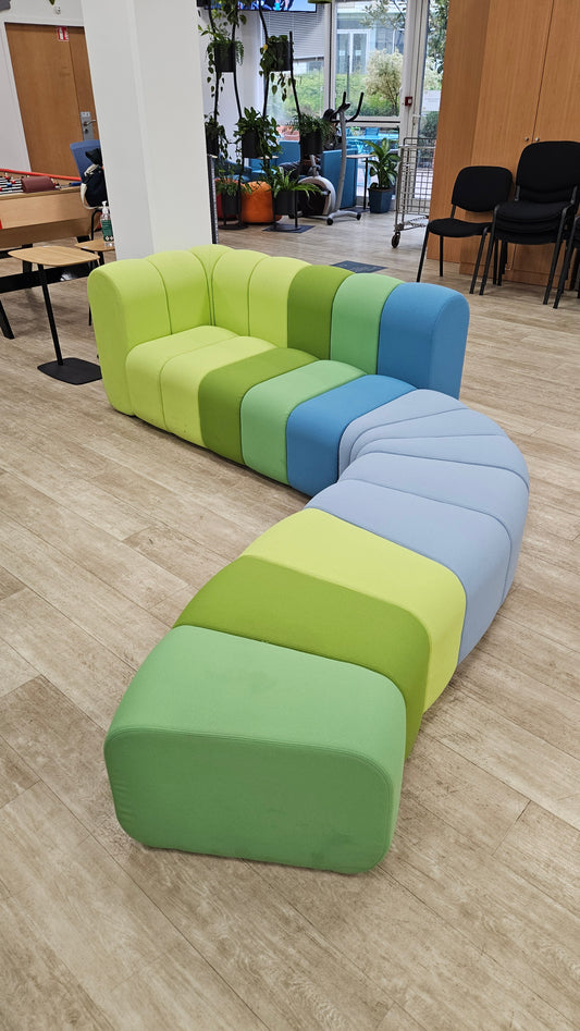 Canapé modulable BOB de la marque Bla Station. 30 blocs disponibles, sections permettant de personnaliser le canapé selon vos besoins. Fabriqué en tissu bleu-vert, il apportera une touche de couleur et d'originalité à votre espace détente. Parfait pour créer un coin confortable et accueillant pour se détendre et se relaxer.