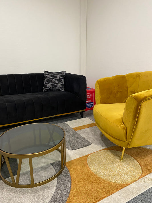 Cette table basse ronde est composée entièrement de métal noir, offrant un design moderne et élégant. Le plateau et les pieds sont fabriqués en métal, assurant robustesse et durabilité.