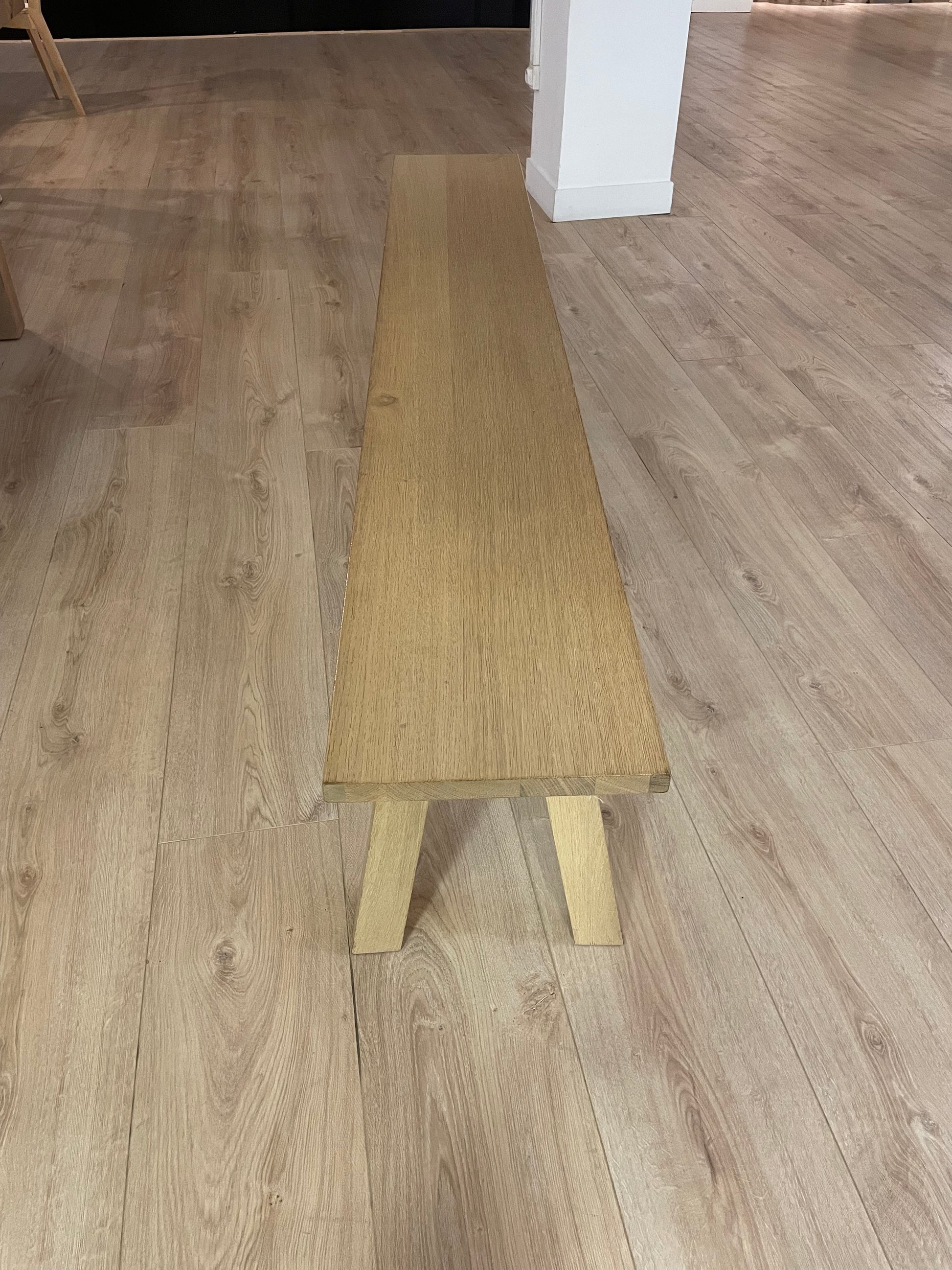 Banc en bois avec quatre pieds en biais. Très bon état.