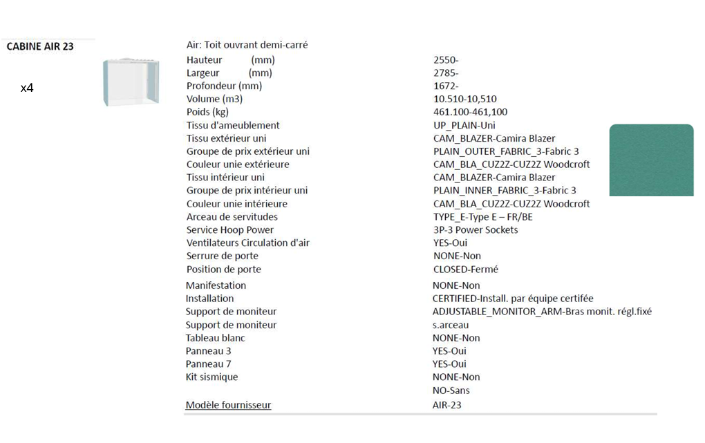 Cabine acoustique 2-3 OrangeBox Air 23 Vert d'eau