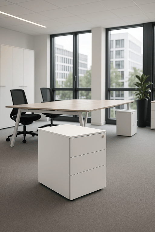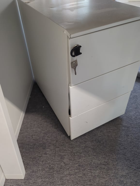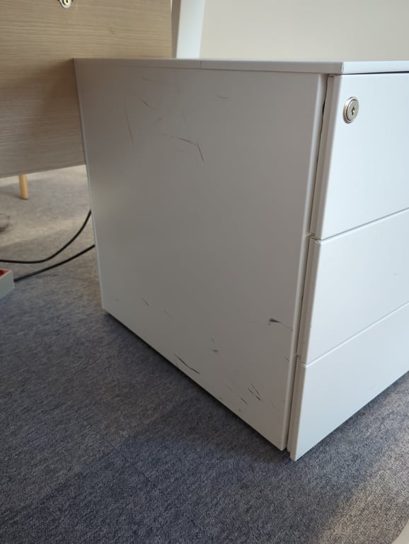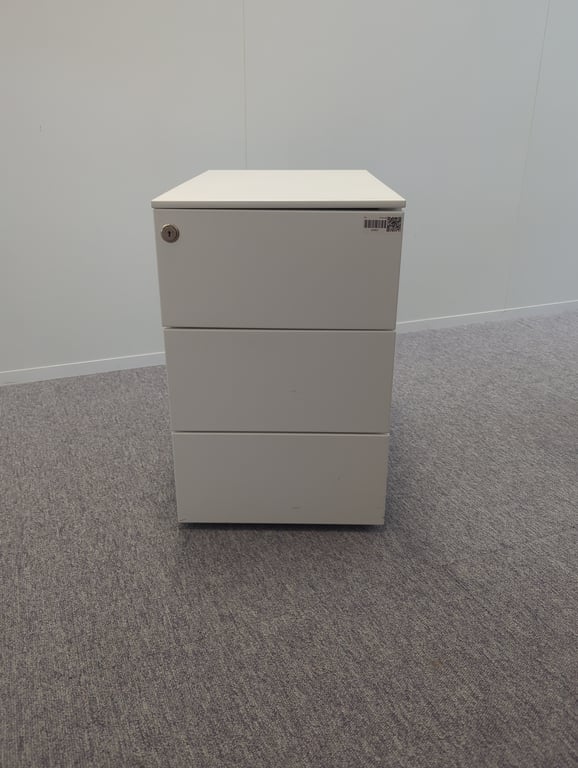 Caisson en métal blanc avec roulettes et fermeture à clé