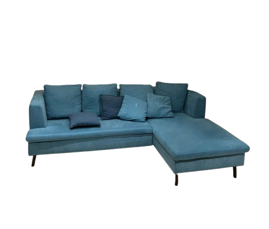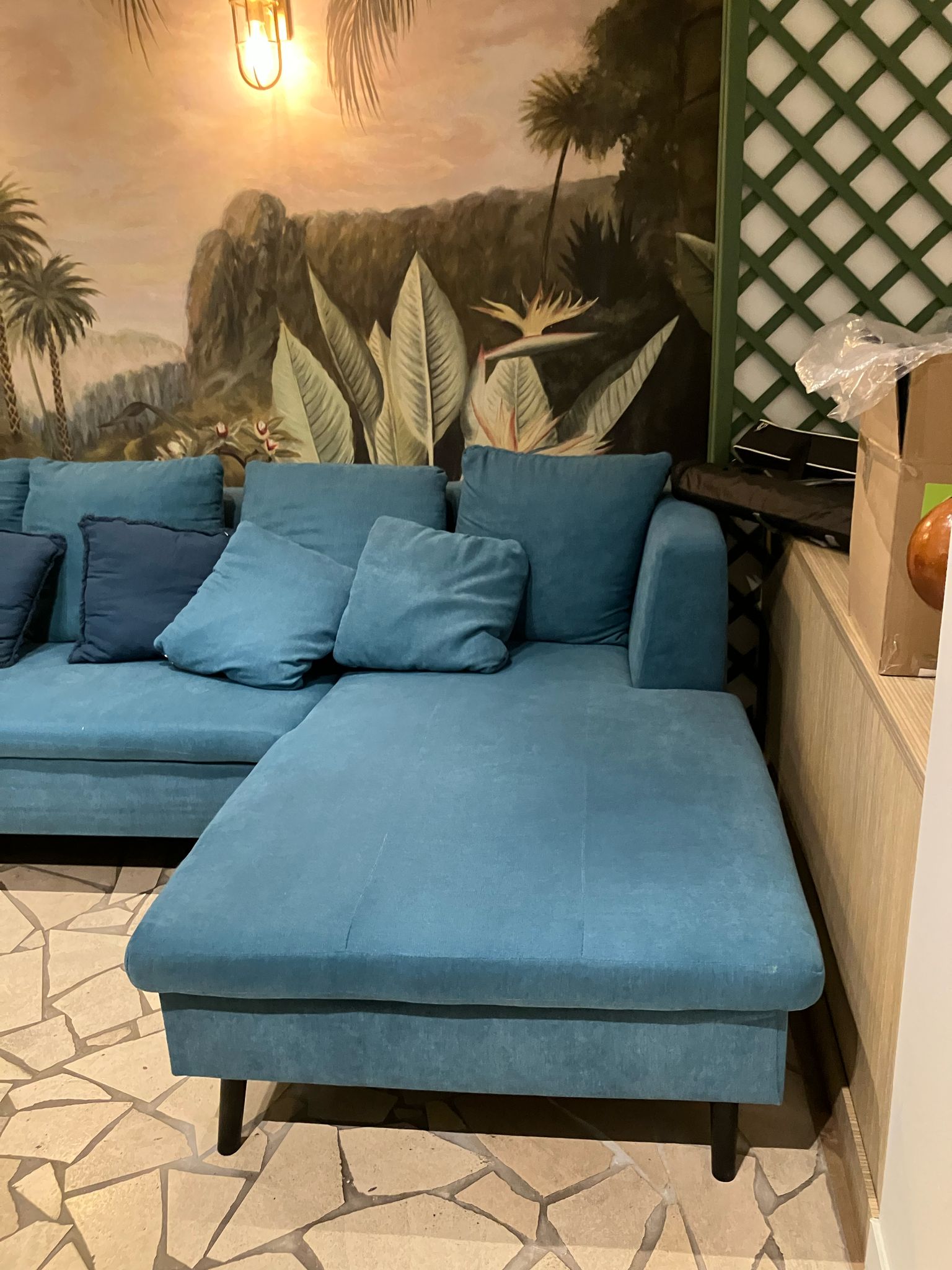 Ce canapé d'angle en tissu bleu ajoutera une touche de modernité à votre espace détente. Avec ses dimensions généreuses de L280 x l200 x h75 cm et une hauteur d'assise confortable de 40 cm, il est idéal pour accueillir plusieurs personnes. Les pieds en métal noir apportent une stabilité supplémentaire et une allure élégante à l'ensemble. Les accoudoirs intégrés assurent un confort supplémentaire pour des moments de relaxation inégalés.