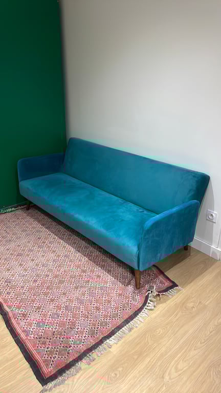 Canapé rectangulaire en velours Boston Blue avec accoudoirs