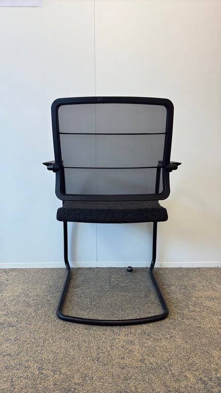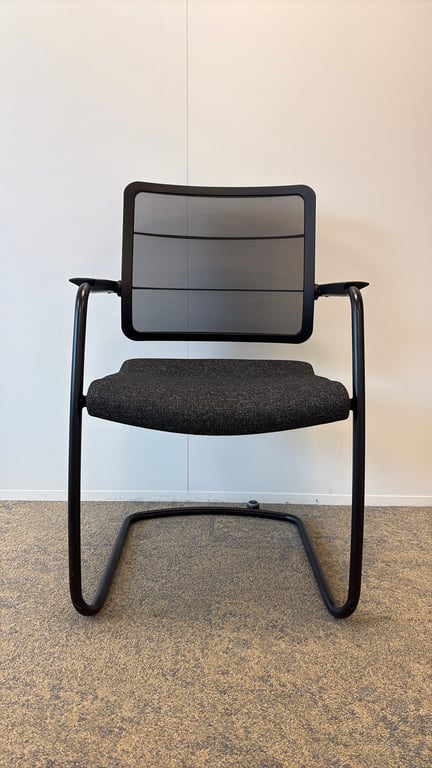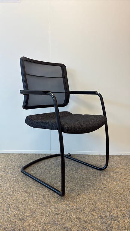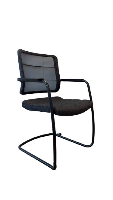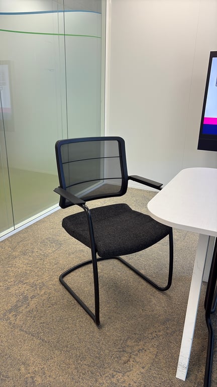 Chaise de réunion avec accoudoirs en tissu et plastique noire