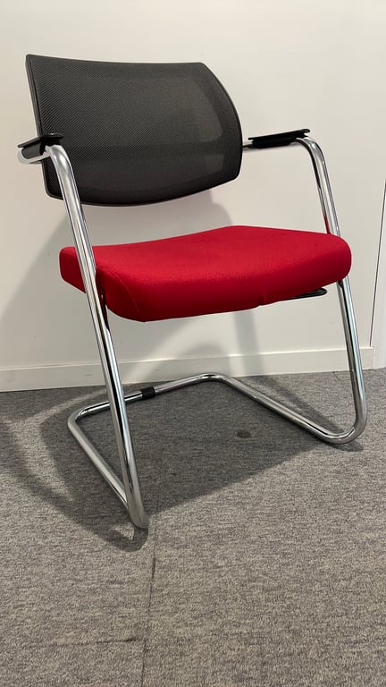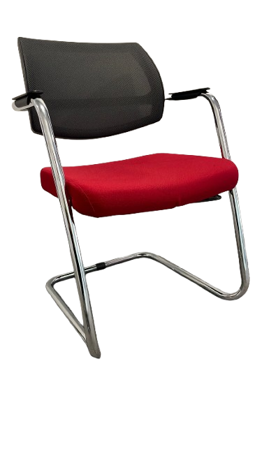 Chaise de réunion avec accoudoirs et dossier en résille, piètement luge