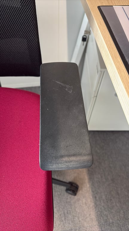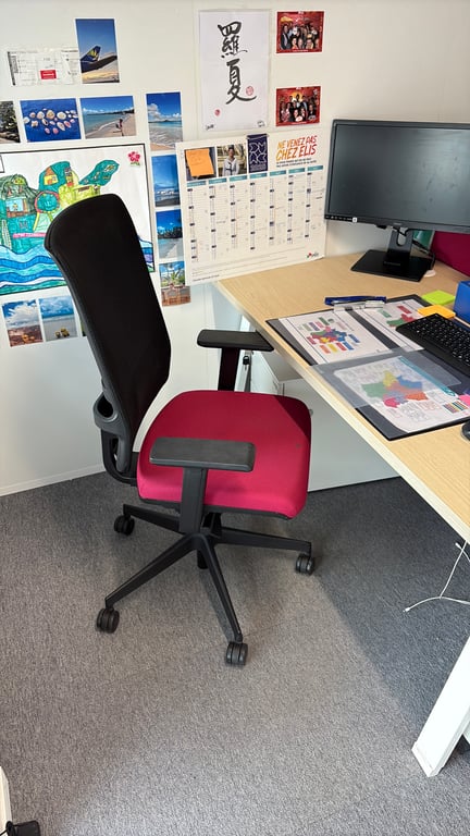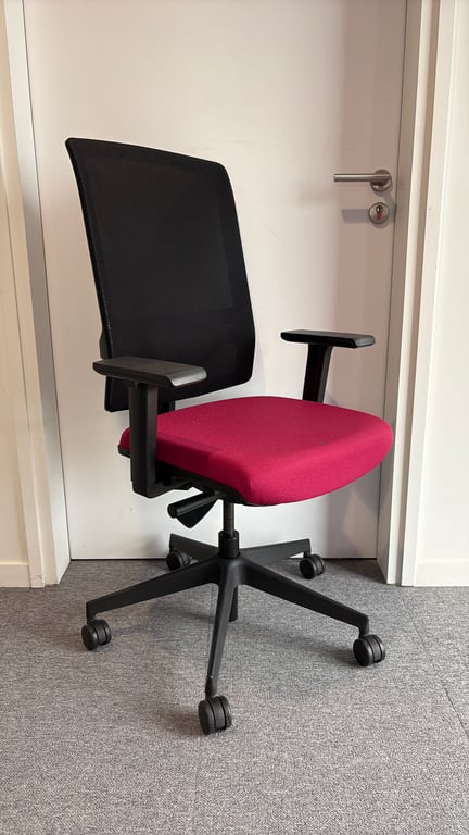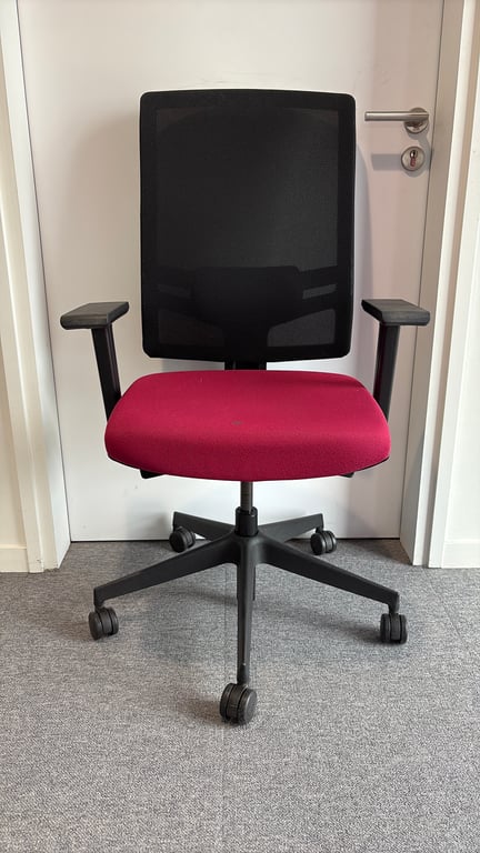 Les accoudoirs en plastique noir disposent d'un réglage en hauteur et en largeur, s'adaptant à vos besoins. Le piètement en étoile en plastique noir assure une stabilité fiable. Avec des dimensions de 63 cm de largeur et 65 cm de profondeur, ce fauteuil se distingue par son design moderne et sa couleur d'assise Red Violet pour ajouter une touche de couleur à votre bureau.