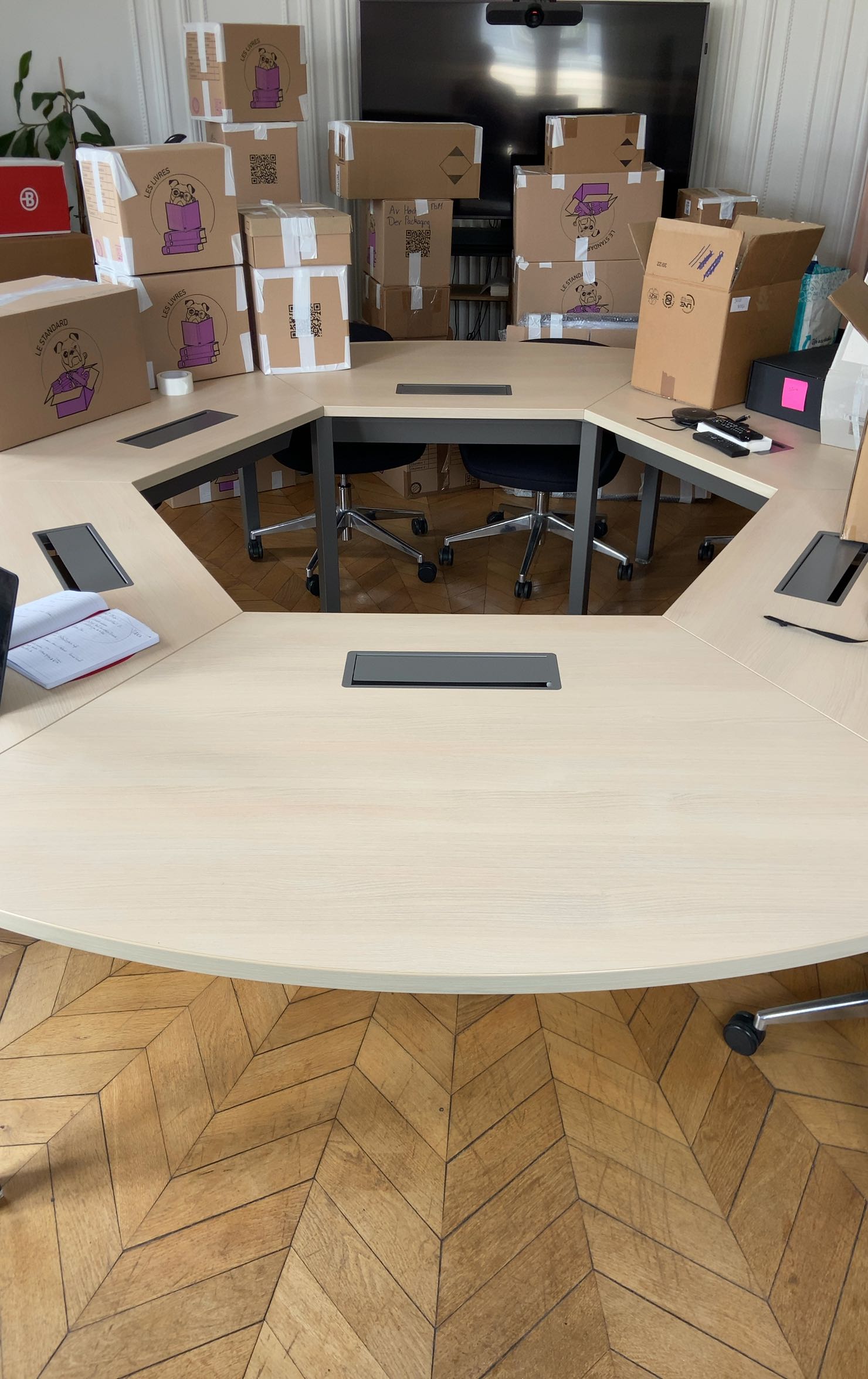 La majorité du mobilier arrive déjà assemblé ou sera réassemblé sur place par l’équipe de livraison, directement dans votre bureau.