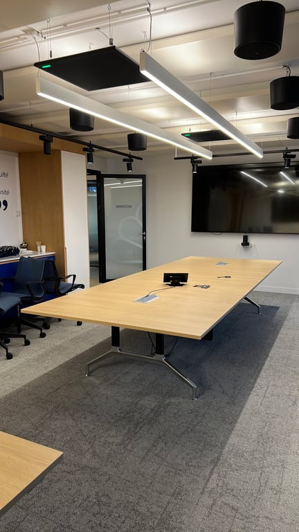 Table de réunion rectangulaire avec accès goulotte et top access
