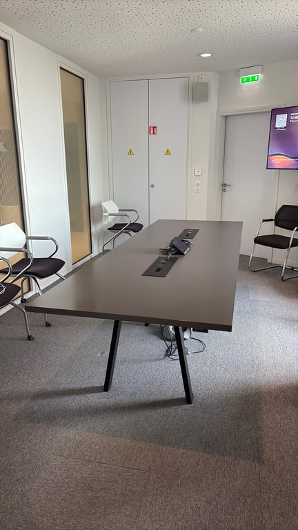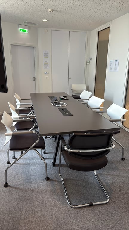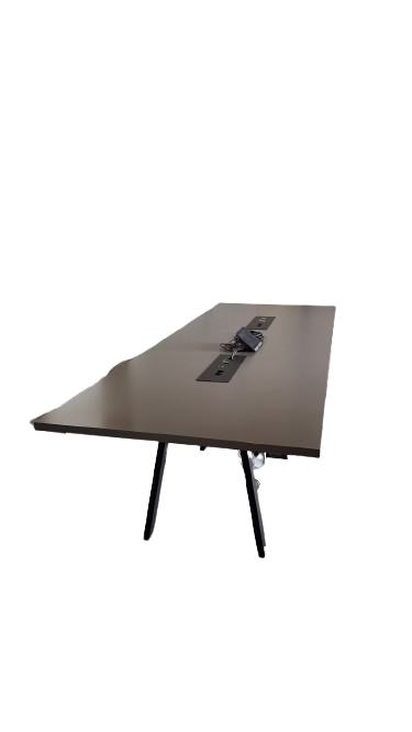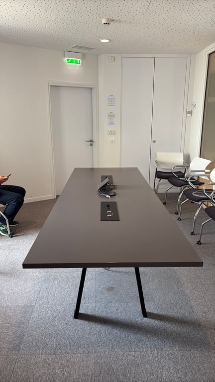 Le plateau est fabriqué en bois de couleur grise (code couleur #808080), apportant une touche d'élégance à votre salle de réunion. Les pieds sont en métal de couleur noire (code couleur #000000), garantissant une stabilité et une durabilité accrues.