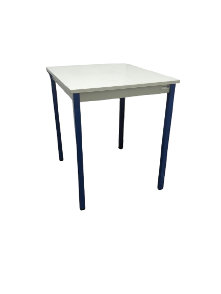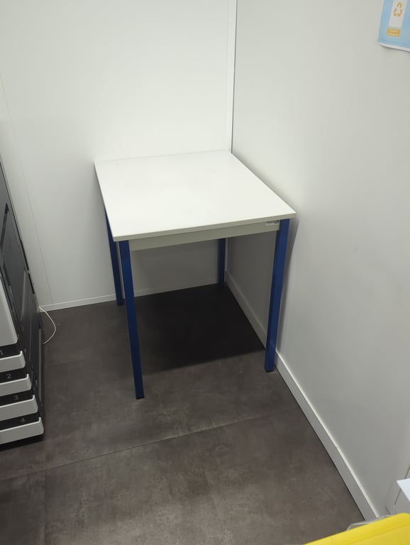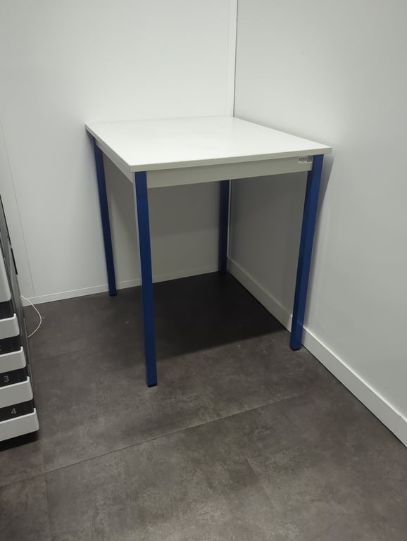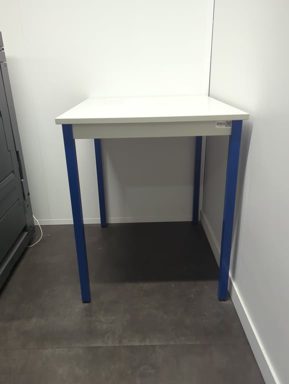 Cette table polyvalente rectangulaire est idéale pour divers environnements grâce à son design fonctionnel et épuré. Elle possède un plateau en mélaminé de couleur gris clair (lightgrey) et des pieds en métal bleu. Ses dimensions sont les suivantes : hauteur 73 cm, largeur 70 cm, et profondeur 60 cm. Cette table ne dispose pas de roulettes et n'est pas rabattable, offrant ainsi une structure stable et permanente. Parfaite pour optimiser votre espace de travail ou de réunion.